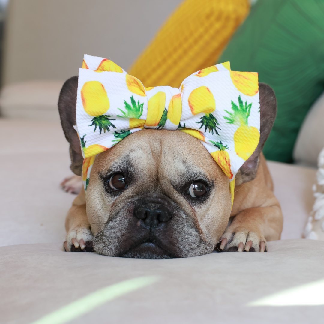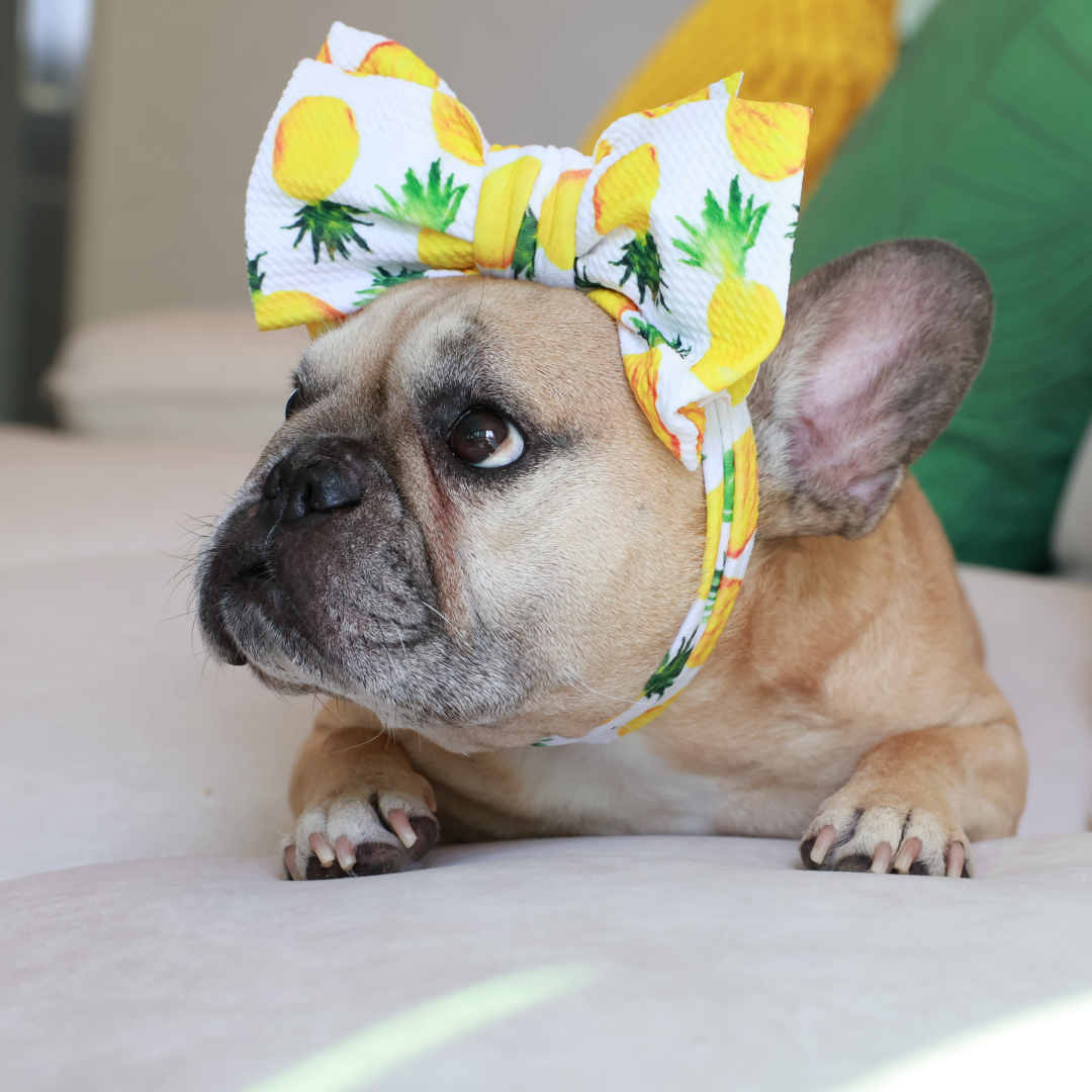 This set contains two bows, one with a lovely blue flower pattern and the other with a gorgeous calming blue. Our Haru's Bows are the perfect doggo bow for all medium to larger size dogs. All bows come with a stretchy band that stretches to fits all size heads and are pet safe. Haru's Bows come in 18 different colors/patterns and are soft, stretchy and just PAWFECT!