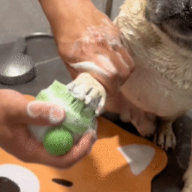 Stop reaching for your dog's shampoo bottle! With the Foaming Globe it's always in your hand. Just squeeze the Foaming Globe whenever your doggo needs more foam!