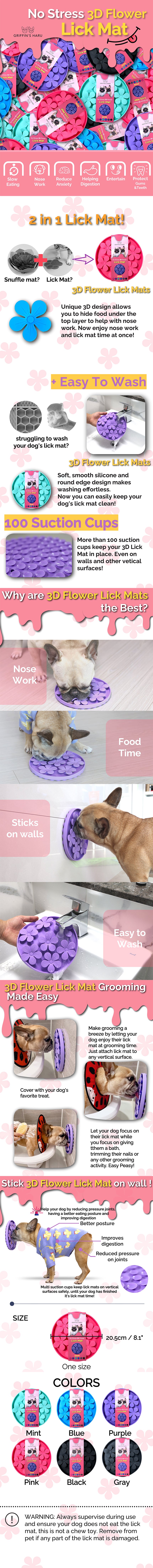 3D Lick Mats are the perfect distraction at bath time, and because of their stong sunctions you can attach your mat to any bath or bathroom wall. Bath time is now a breeze with our 3D Lick Mats.