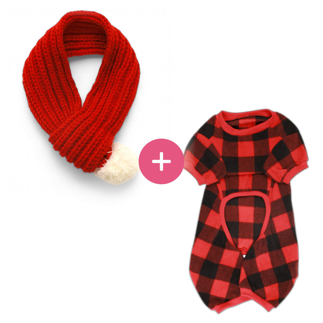 The Christmas PJs have a hole for connecting a harness and leash, so your pup can stay warm while out and about in the chilly winter!